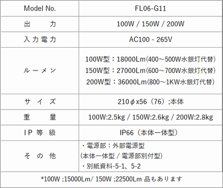 ・電源部別付型 150W (27000Lm / 22500Lm)